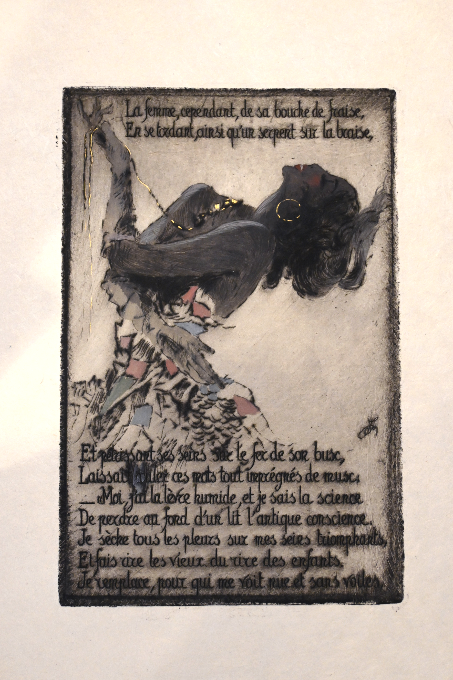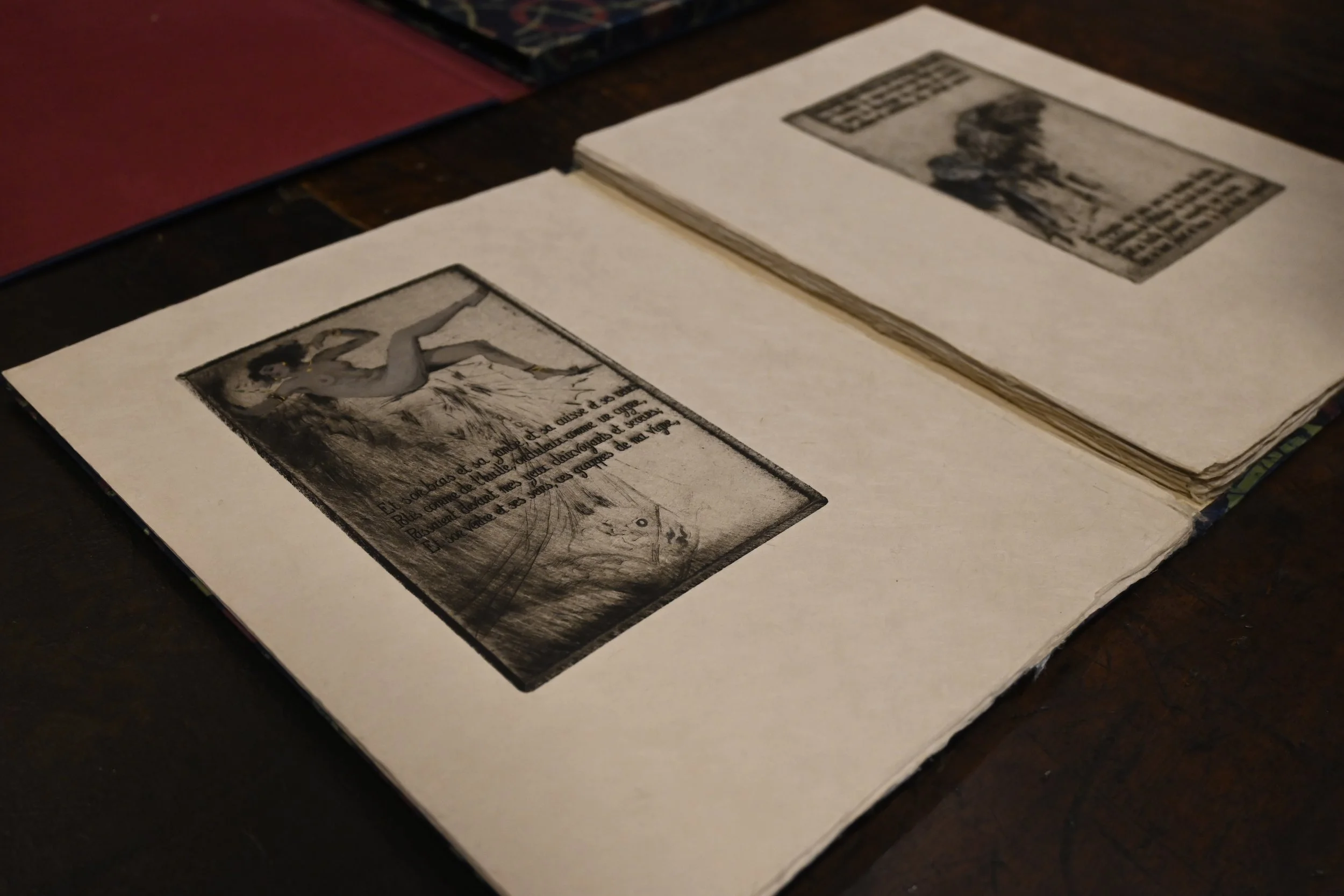 Charles Baudelaire (1821-1867) [author], Dominique Jouvet-Magron [illustrator], Les VI Poèmes des Fleurs du Mal Condamnées en 1857. Les Bijoux. Le Léthé. A Celle qui Est Trop Gaie. Lesbos. Femmes Damnées. Delphine et Hippolyte. Les Métamorphoses du Vampire. / Pointes sèches en couleur de Dominique Jouvet-Magron. Paris: 1931. Rosenbach Museum & Library, C4 .B338fl 931. Image credit David Rhys Owen