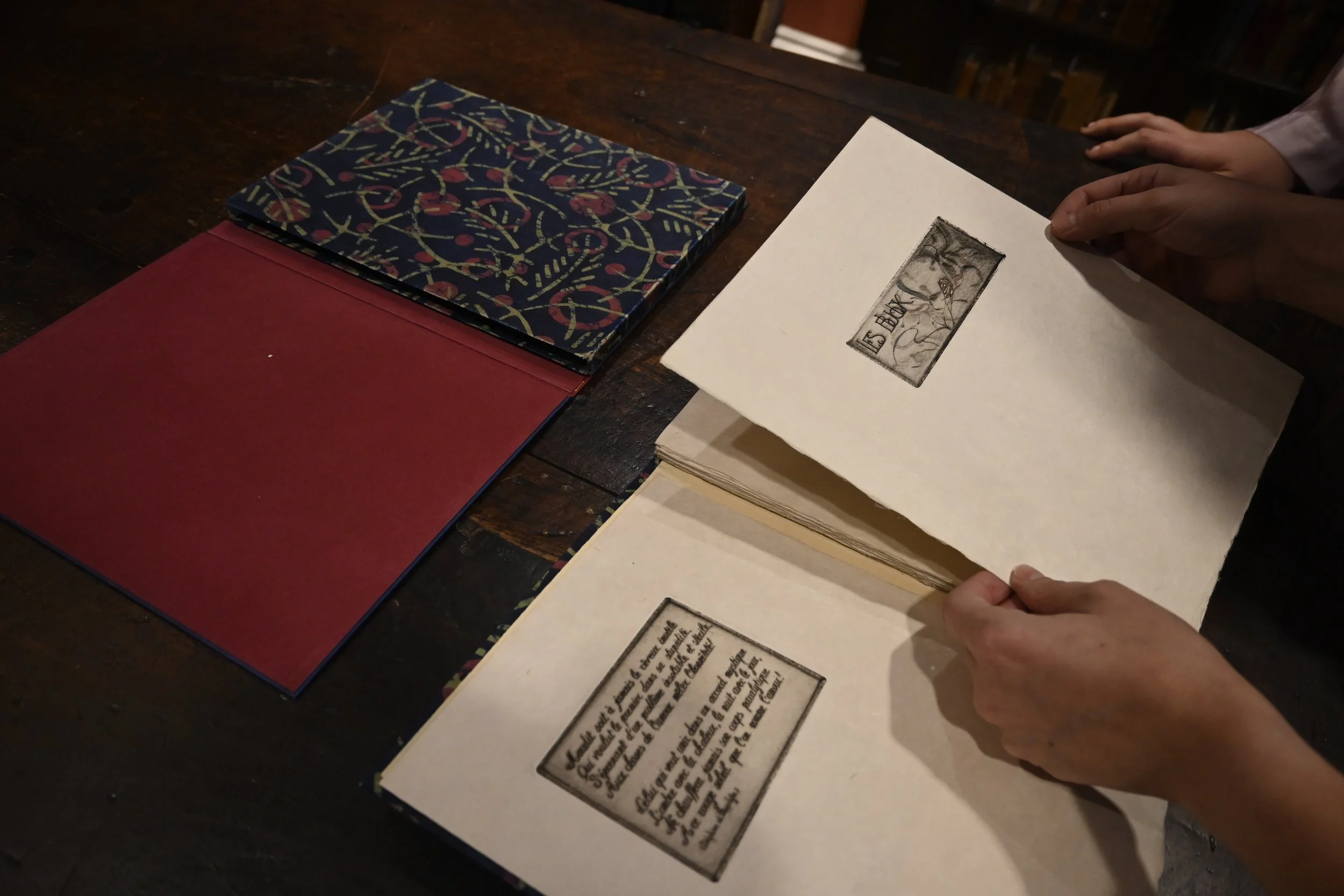 Dominique Jouvet-Magron crossed our path at a perfect moment for such a dynamic visual book object to join the Rosenbach’s collection. In 2025, the Rosenbach hosted 11 hands-on book arts programs, from making book jewelry to recreating early American bookbinding. Dominique’s arrival was foreshadowed by the arrival of an antique printing press for the newly conceptualized Rosenbach Book Arts Center, where we celebrate the artistry of bookmaking and how craft intersects with and amplifies significant literary works. Just as Dominique Jouvet-Magron arguably does for les pièces condamnées.
