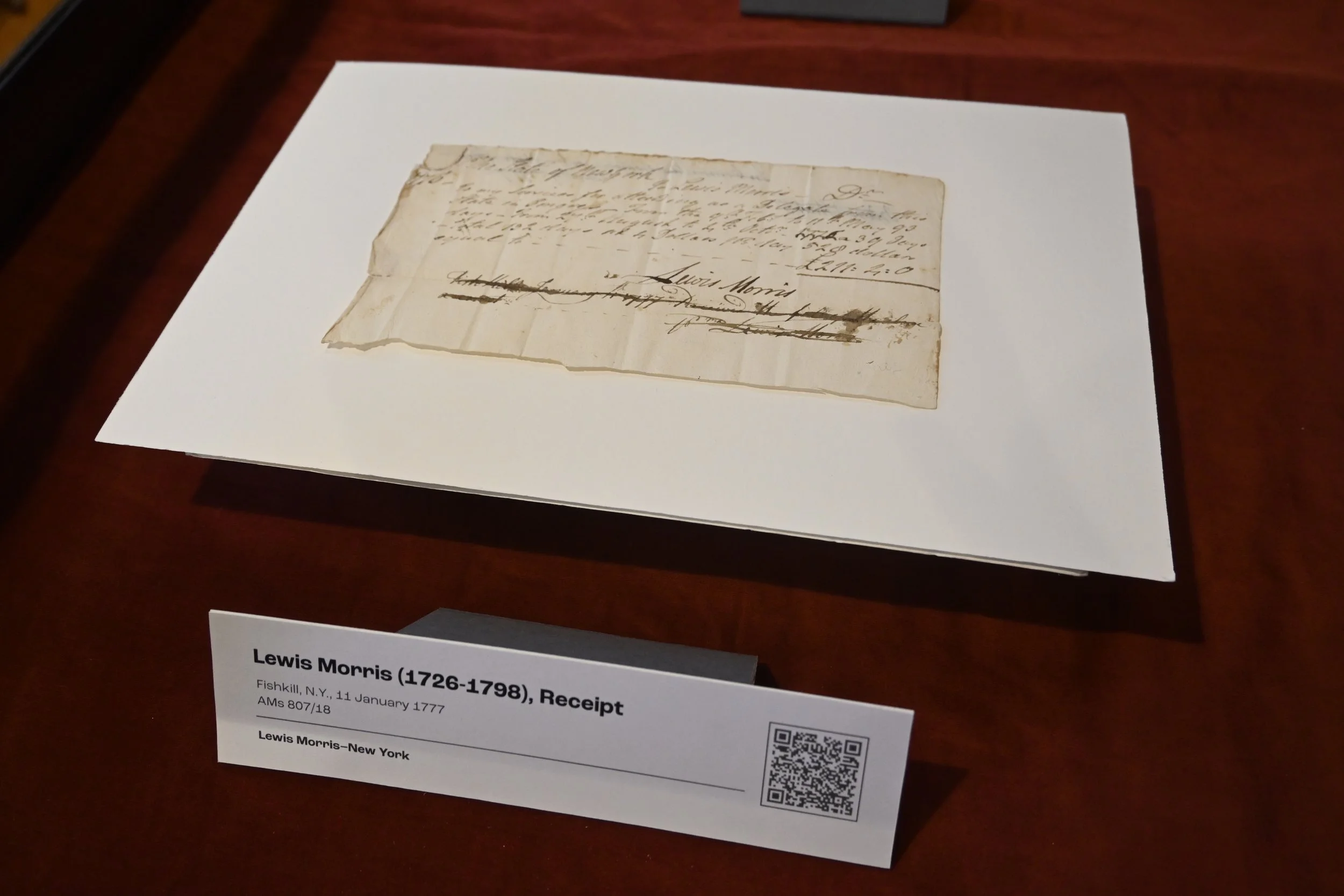 Lewis Morris signed this receipt for payment by the state of New York for his service as a delegate to Congress in 1776, service that was often frustrating in that crucial year. Although they were active supporters of independence, Morris and his fellow New York delegates had to abstain from voting in support of the resolution for independence on July 2 or the Declaration on July 4 because their legislature had not yet instructed them to do so. When the instructions arrived a week later they were able to sign with the rest.